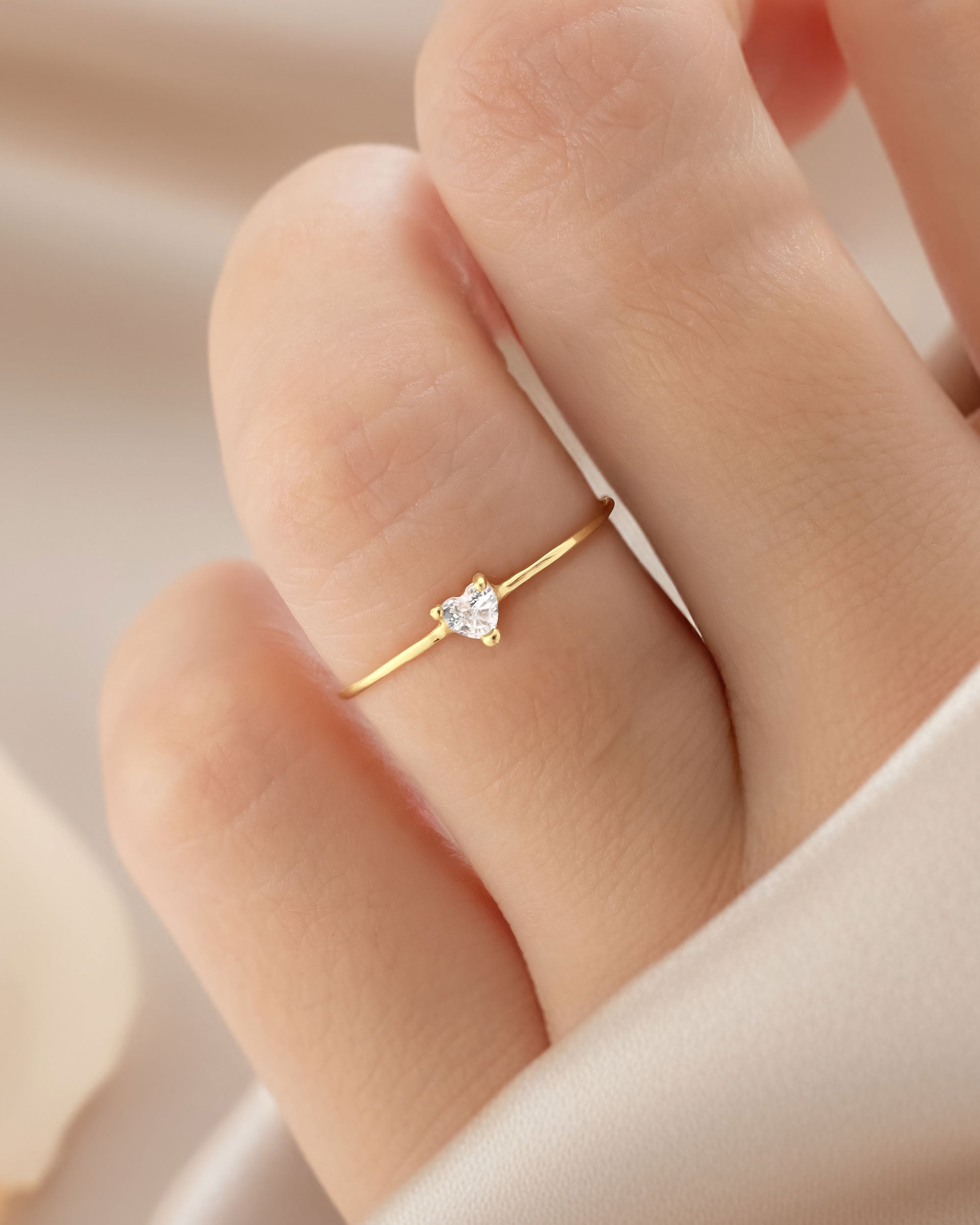 Anillo en oro nacional de 18 kilates con circón en forma de corazón. Un diseño delicado que refleja amor, dulzura y elegancia en su máxima expresión.