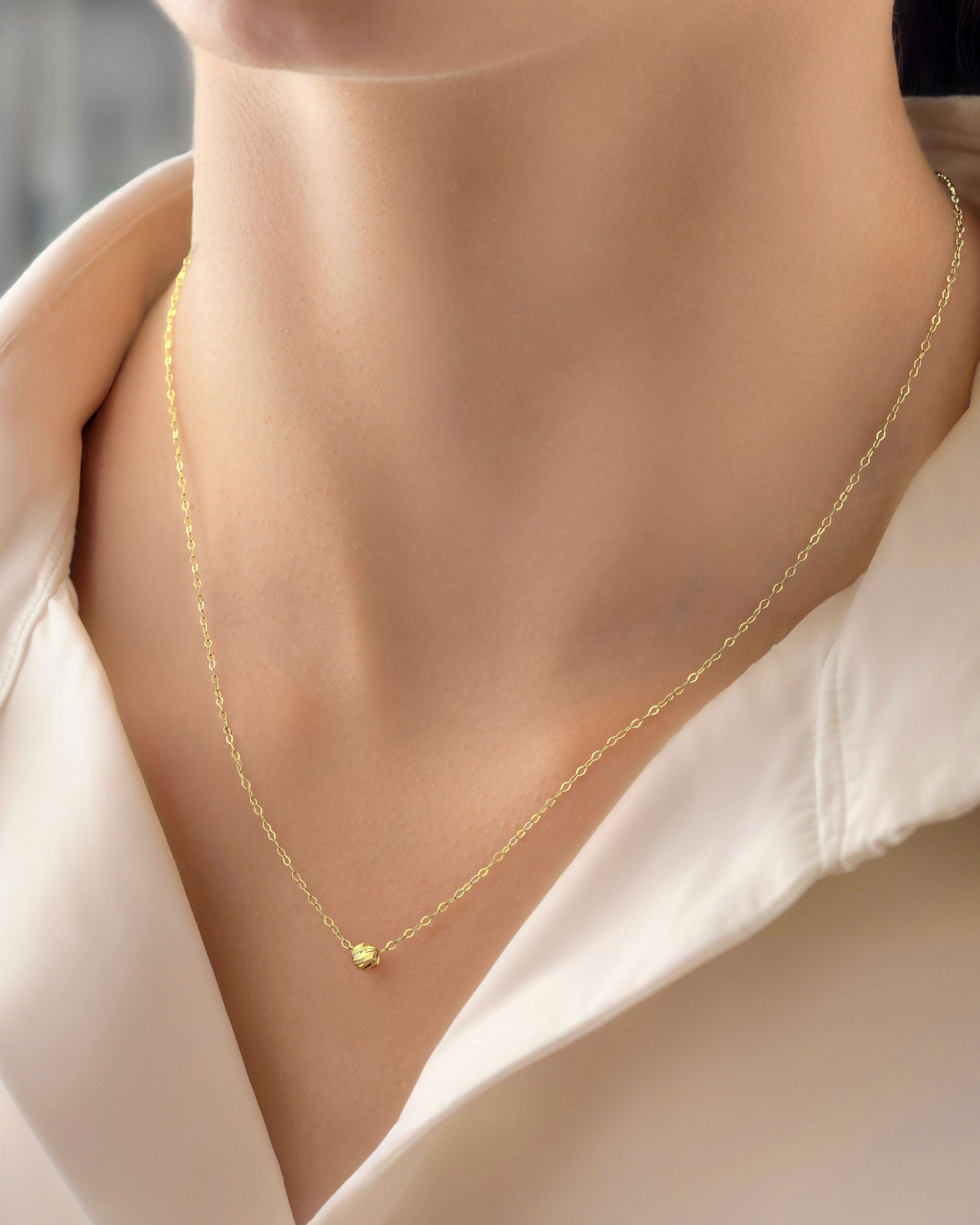 Cadena mini rolón de 40 cm en oro de 18 kilates, pensada para quienes aprecian la elegancia en los pequeños detalles. Su diseño minimalista se resalta con una esfera diamantada #4.
