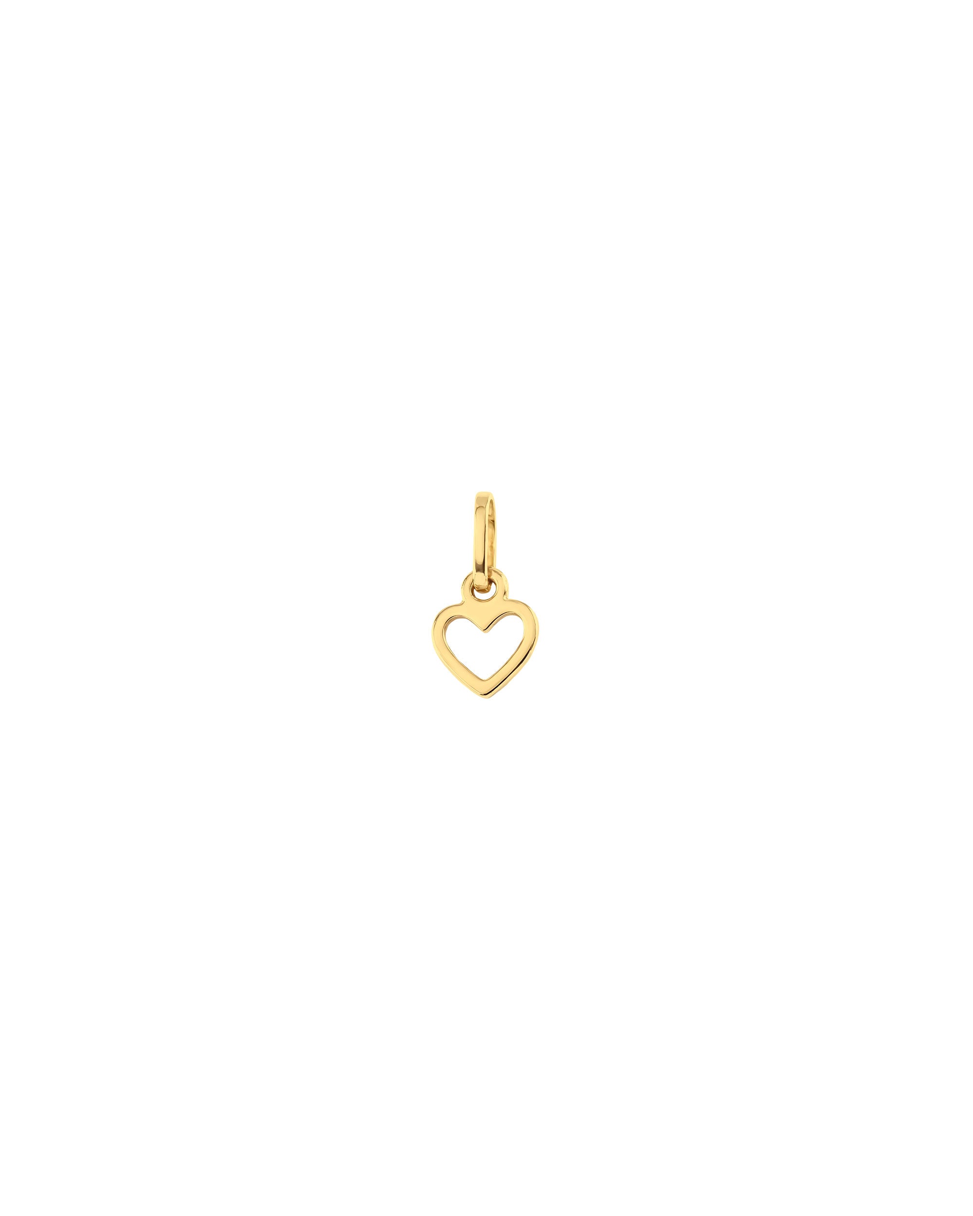 Dije en forma de silueta de corazón y elaborado en oro de 18 kilates, refleja la delicadeza de los sentimientos más puros.