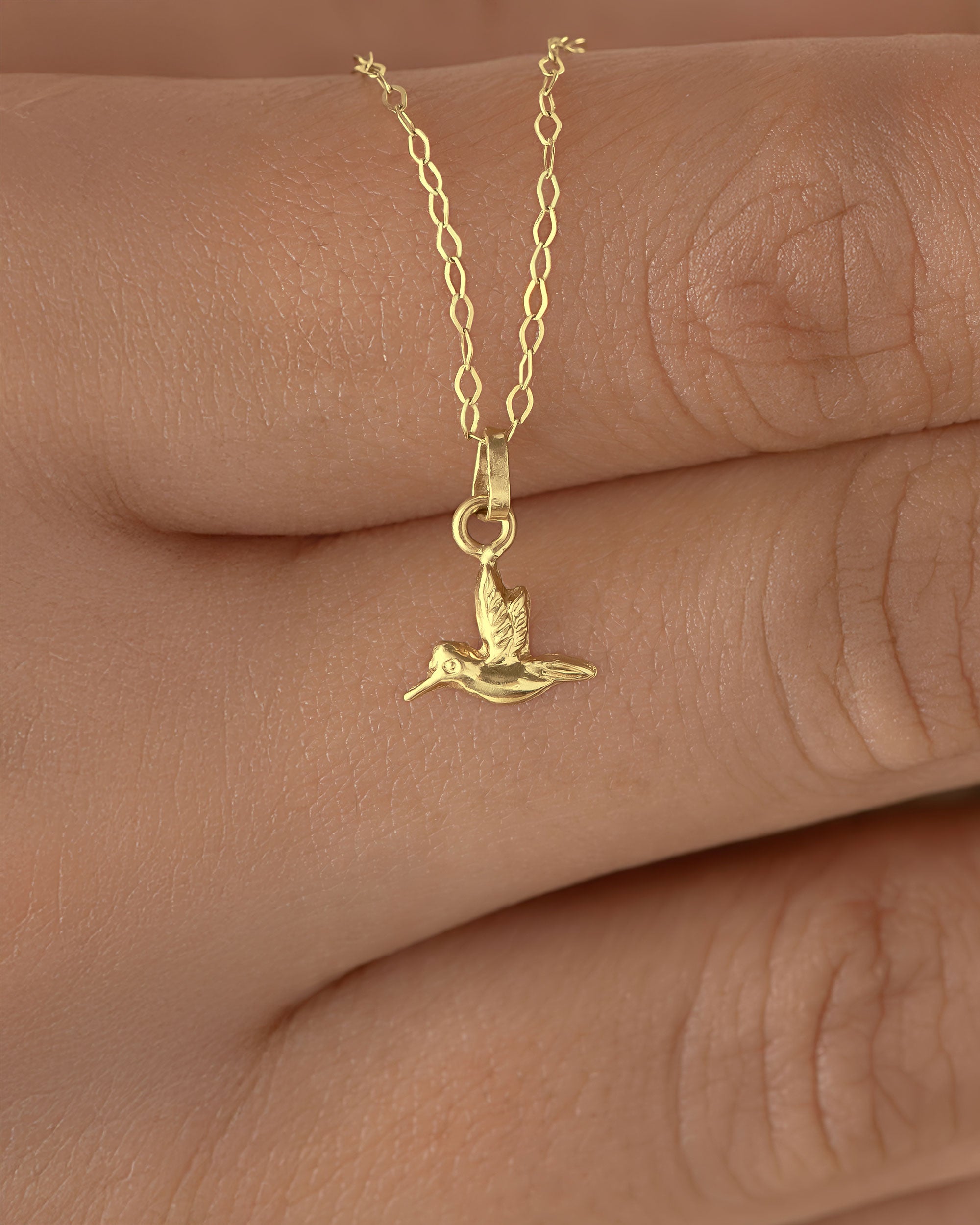 Dije Colibrí en oro nacional de 18 kilates, símbolo de alegría y transformación. Una joya con brillo, calidad y un diseño detallado que resalta por su delicadeza y significado especial