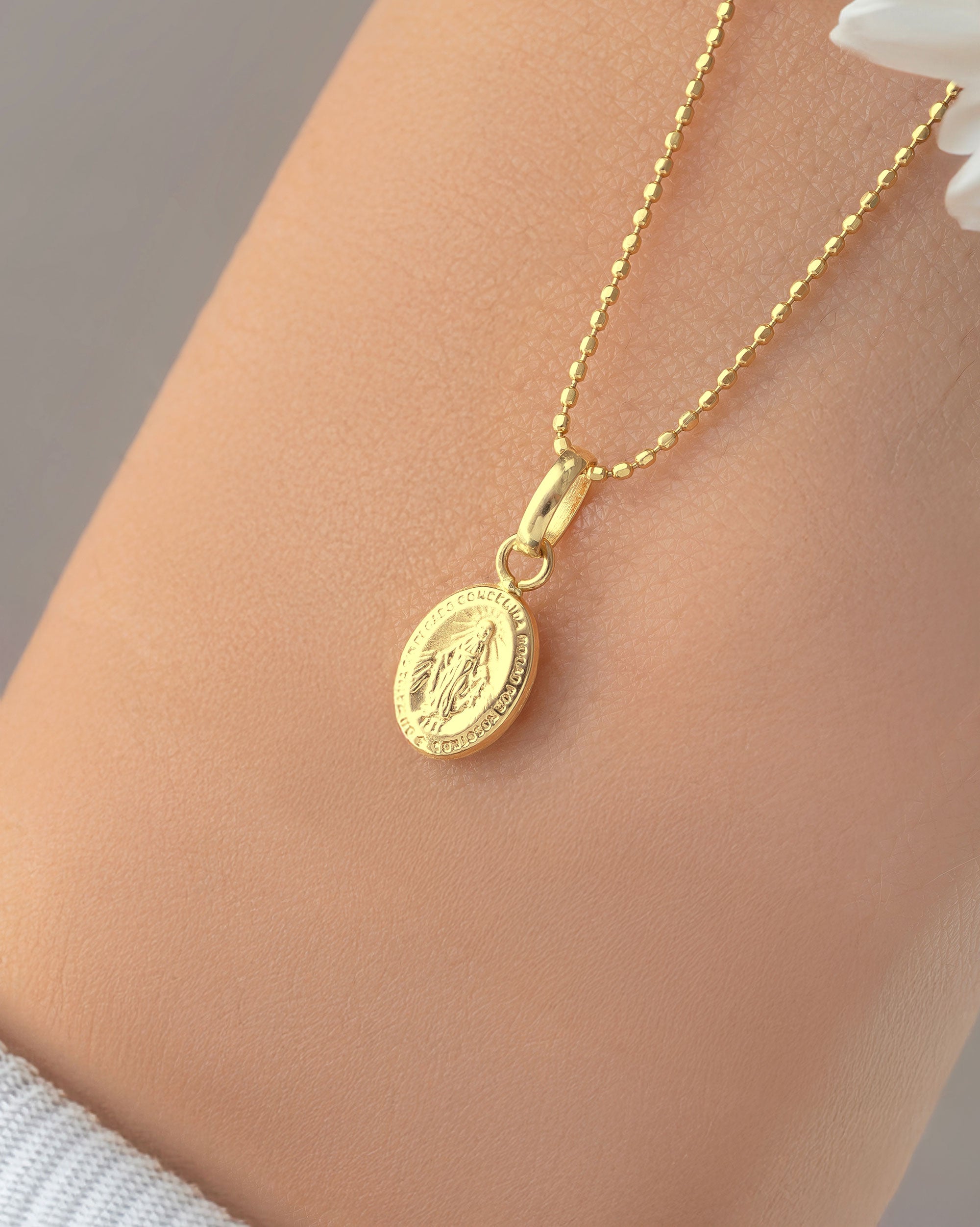 Dije medalla Virgen Milagrosa, elaborado en oro nacional de 18 kilates. Su acabado brillante y su simbolismo espiritual lo convierten en una pieza perfecta para quienes valoran la fe con estilo y elegancia.
