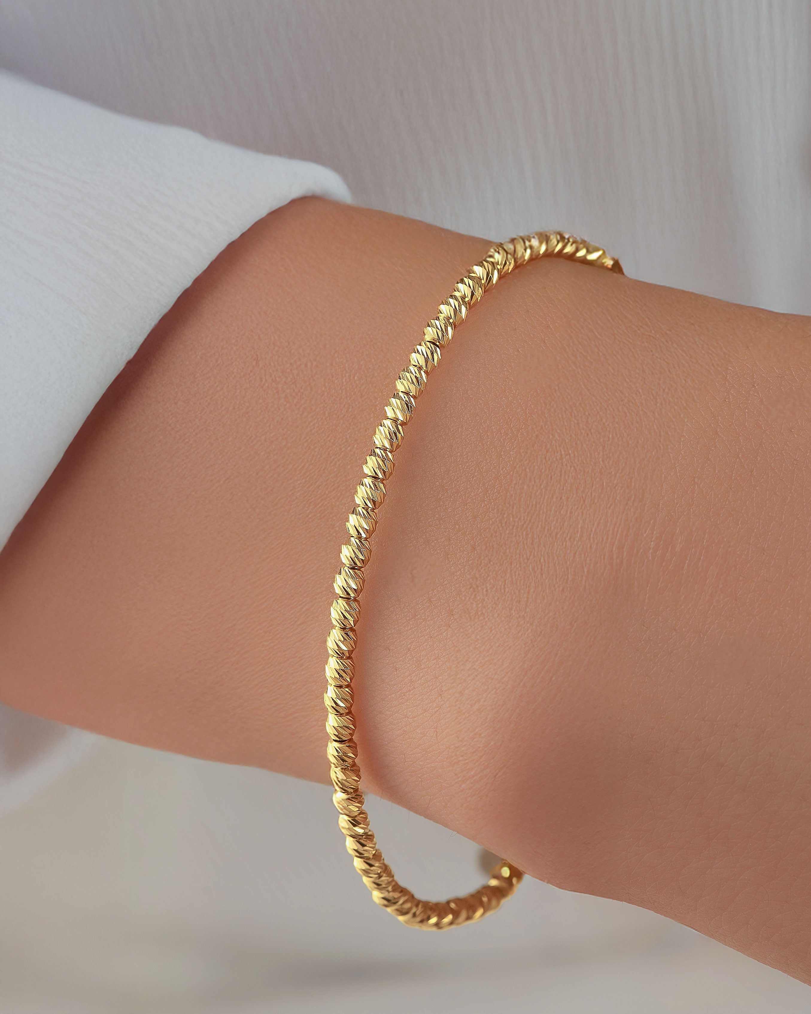 Pulso D´orica  en Oro Italiano de 18 kilates. Su diseño con esferas diamantadas ofrece un estilo elegante y minimalista. Cierre con extensión para un ajuste cómodo y seguro.