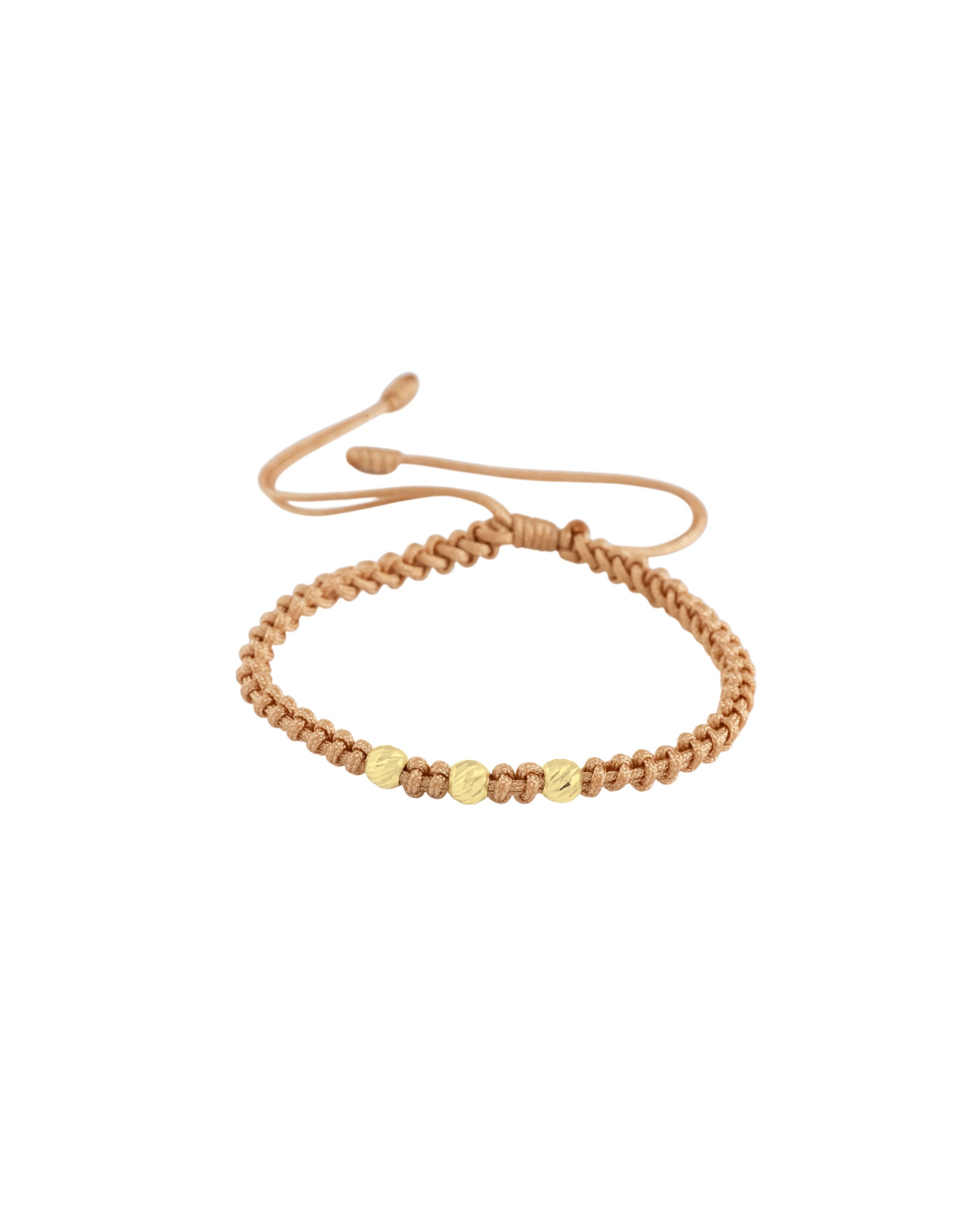 Una creación artesanal única que combina la delicadeza del tejido con hilo chino y el resplandor de tres esferas #4 en oro de 18 Kilates. Destaca por su exclusividad, elegancia y un estilo sofisticado que marca la diferencia.