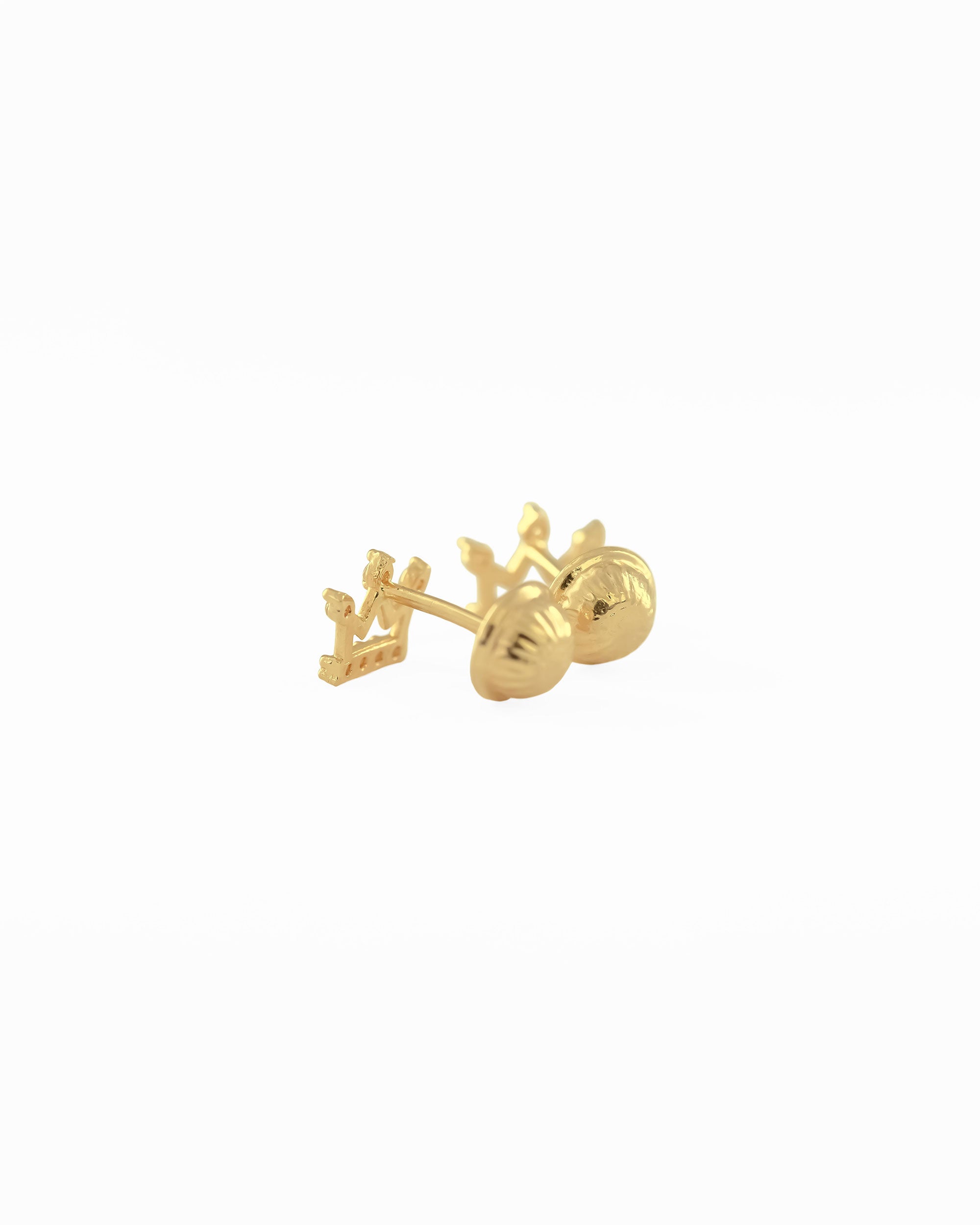 Topos Corona, elaborados en oro de 18 kilates, con delicado diseño de corona decorado con circones blancos. Una joya que refleja elegancia, brillo y un toque de distinción digna de la realeza.