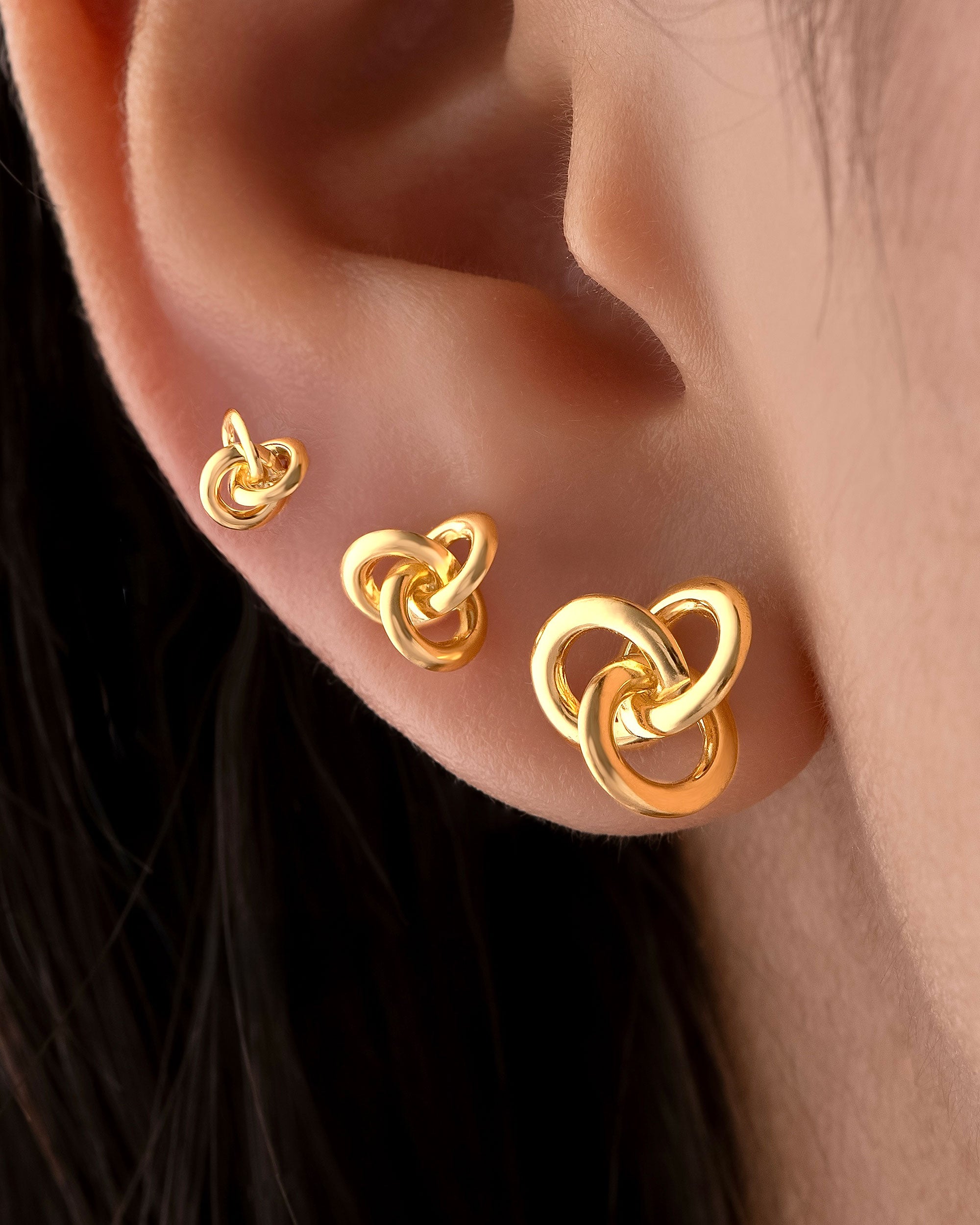 Topos en Oro Nacional 18 Kilates con un diseño moderno de anillos entrelazados con un acabado pulido y brillante combinando lujo y sofisticación.