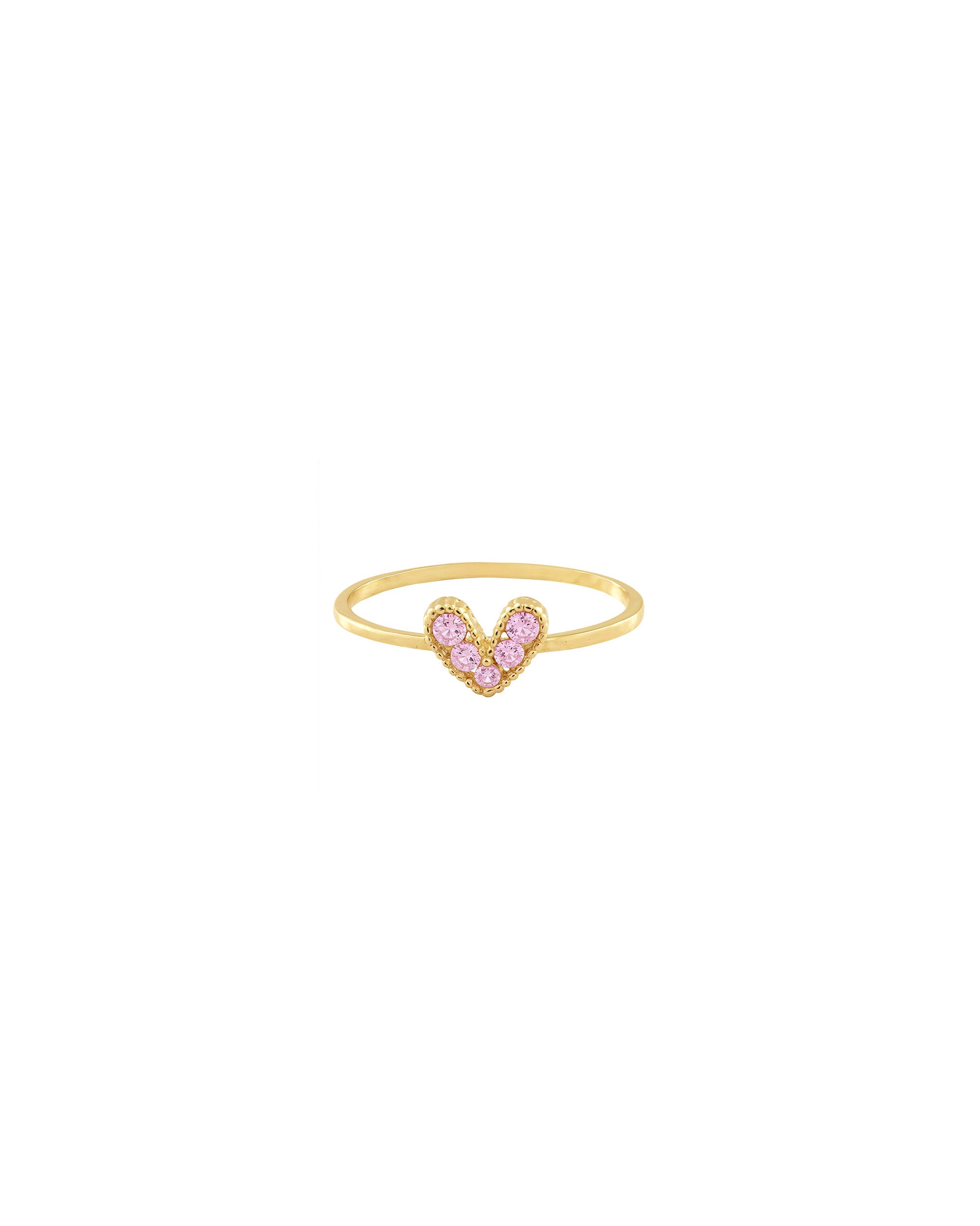 Anillo en oro 18k con diseño de corazón realzado por circones rosados. Una pieza refinada que combina frescura, brillo y significado.