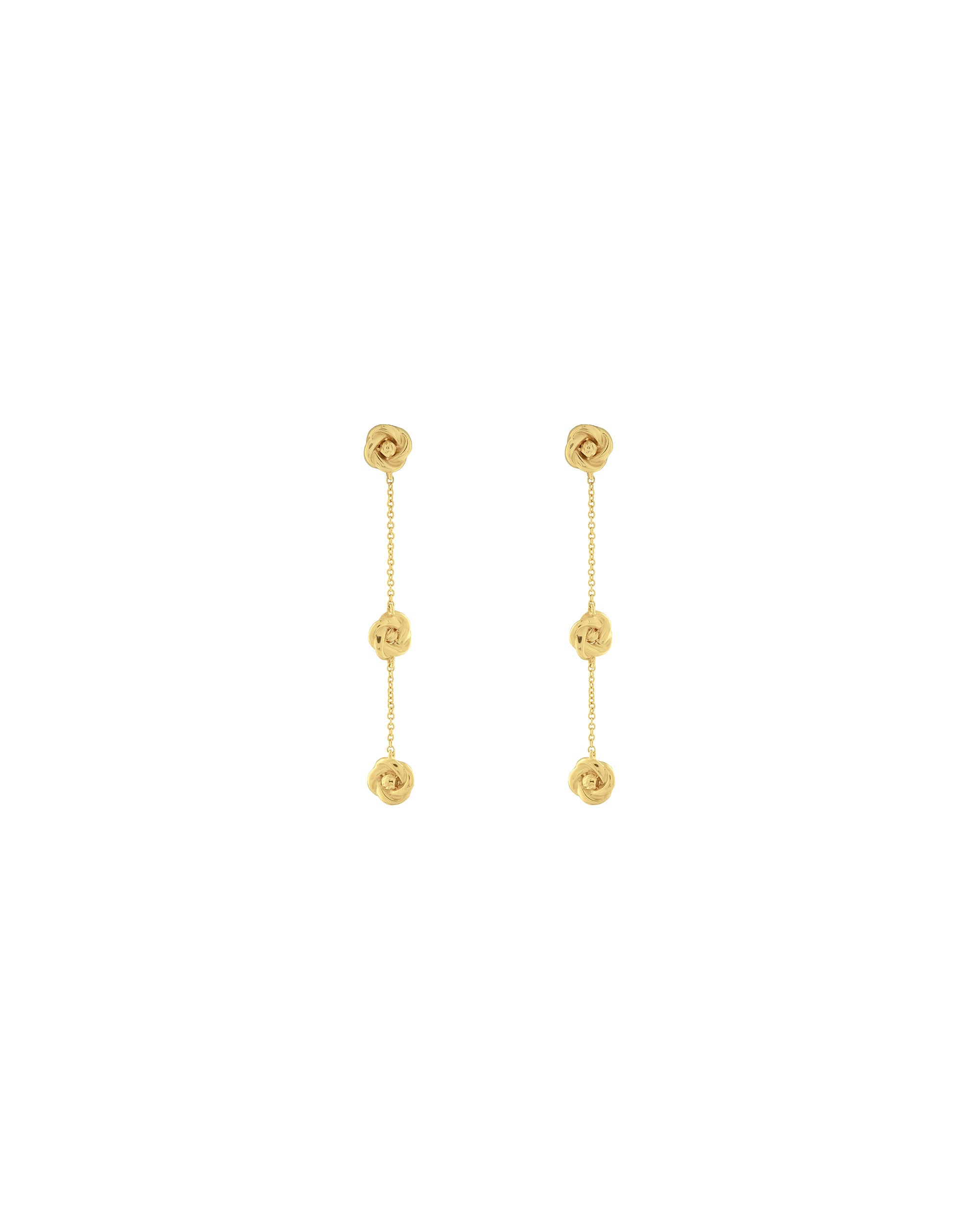 Aretes largos en oro italiano de 18 Kilates , con delicadas rosas y fina cadena que aportan movimiento y brillo sutil. El toque perfecto para elevar cualquier look.