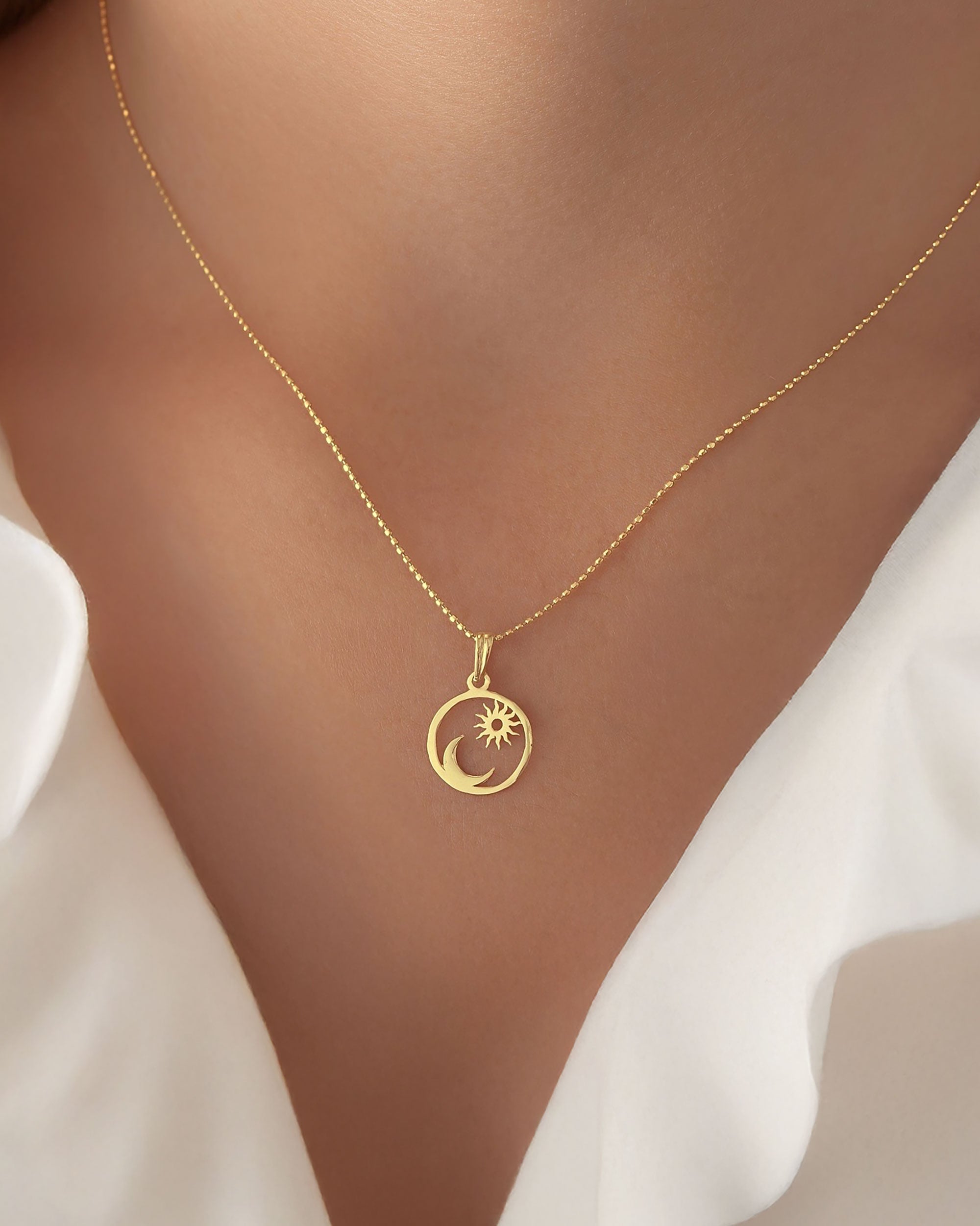 Dije en Oro Nacional de 18 kilates con diseño de sol y luna, una joya que captura la esencia del equilibrio universal. El sol representa la energía, la claridad y la fuerza; la luna, la intuición, el misterio y la calma.