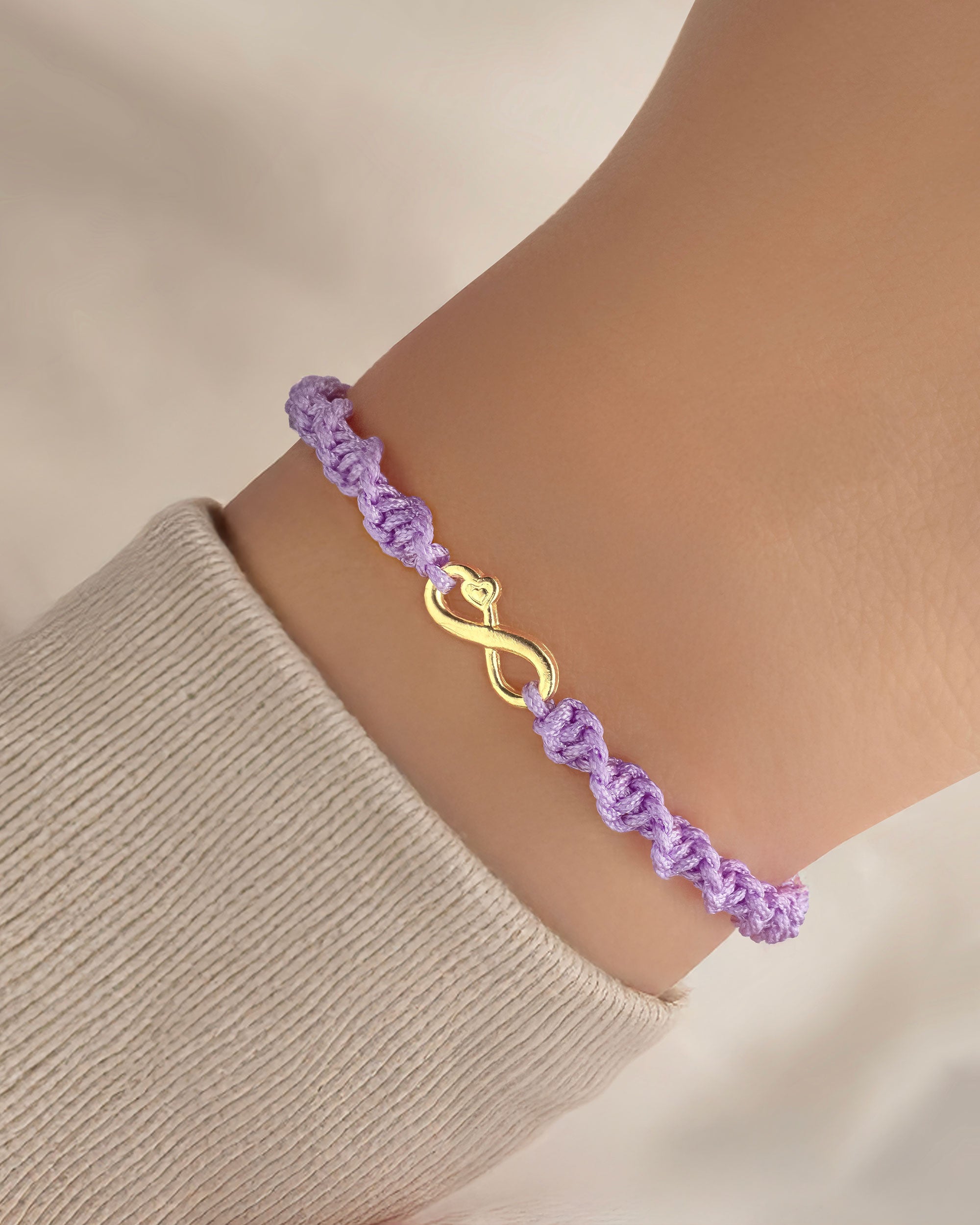 Pulsera ajustable, tejida artesanalmente con hilo chino, Al centro herraje con forma de infinito integrado con un corazón representa la unión duradera, el amor profundo y los lazos que perduran en el tiempo.
