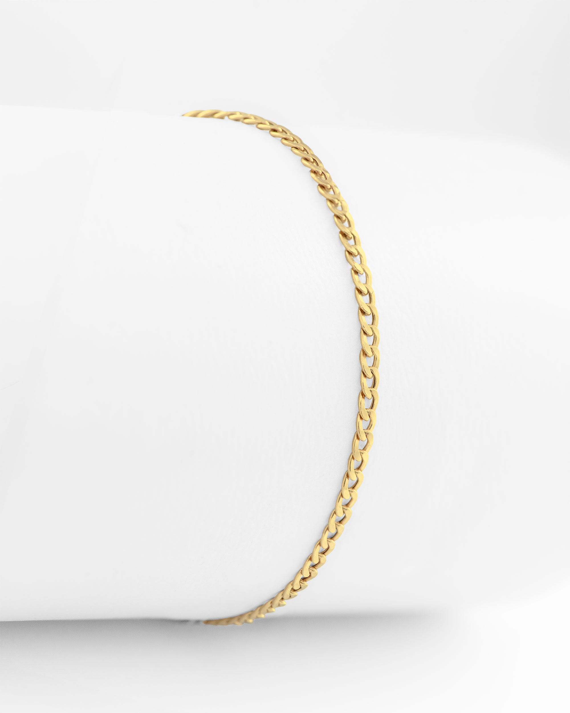Pulsera mini cubana en oro italiano de 18 kilates, es una joya esencial que equilibra elegancia y sobriedad. Su diseño delicado y atemporal la hace perfecta para lucir sola con un estilo minimalista o realzarla con dijes sutiles.