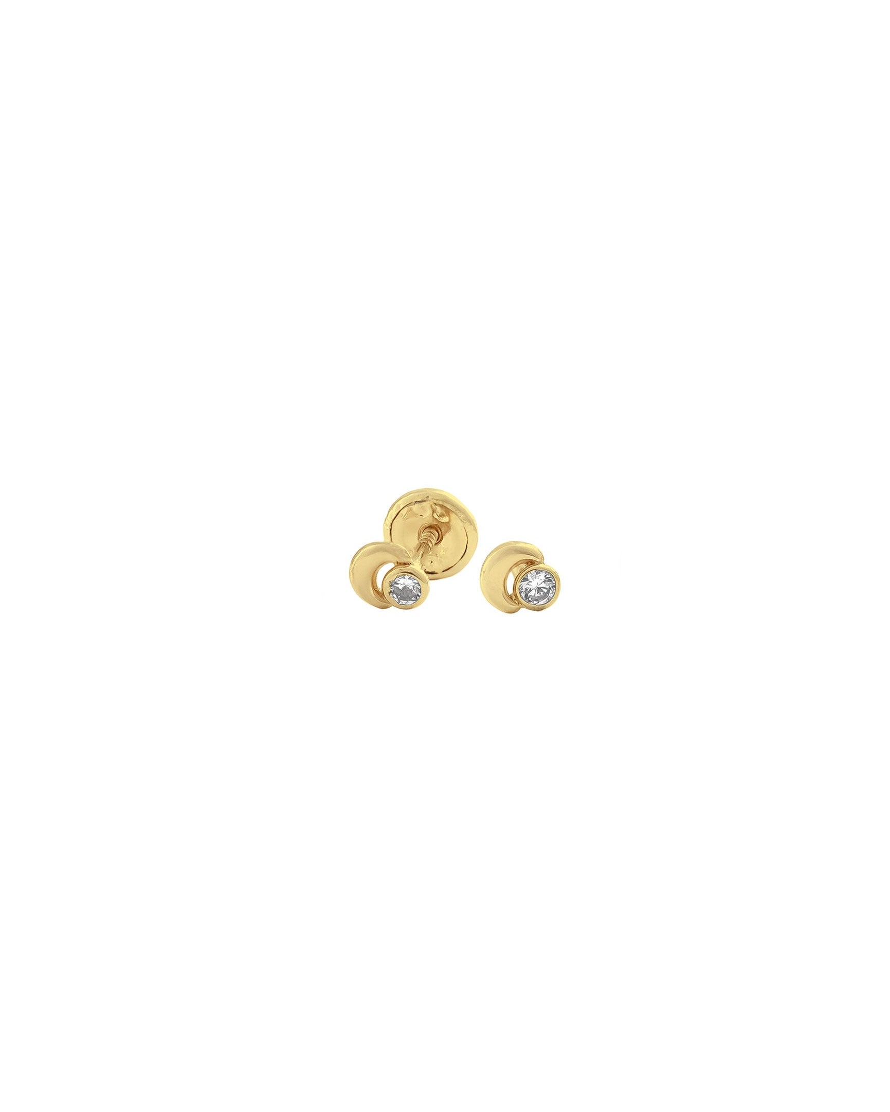 Topos elaborados en oro de 18 Kilates, con un circón brillante disponible en blanco, fucsia o verde. Diseño minimalista, elegante y moderno.